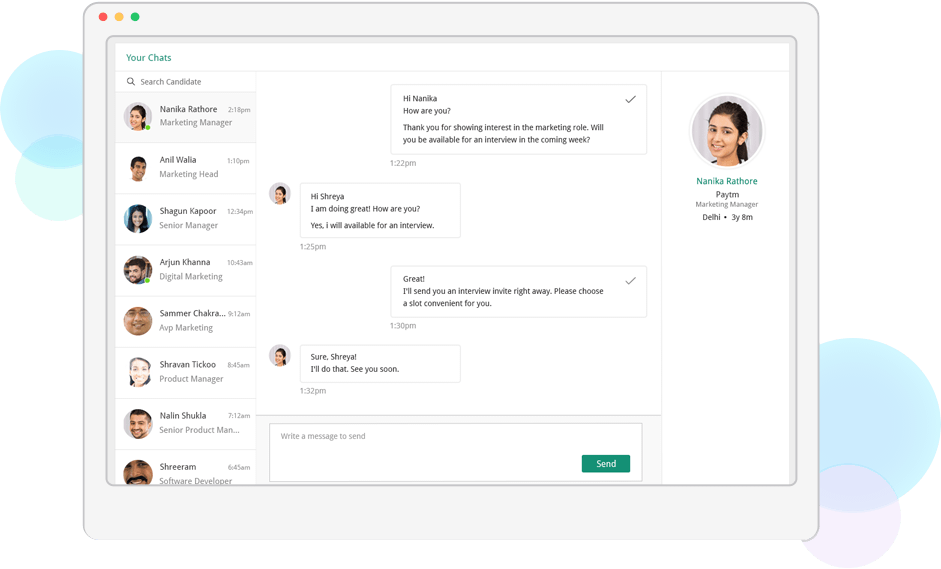 Chat with your candidates and schedule interviews without multiple back-and-forth.